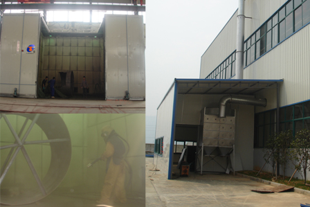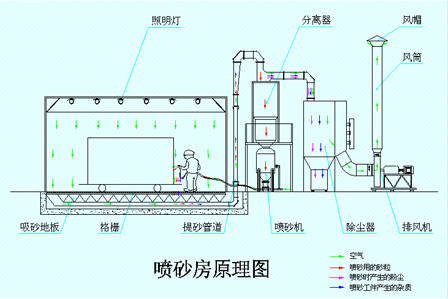 公司與某公司合作的走入式噴砂房順利完工,通過驗收并交付使用,此噴砂房又叫噴丸房;主要技術(shù):1、室體除塵器2、分選除塵器3、砂(丸)料斗4
