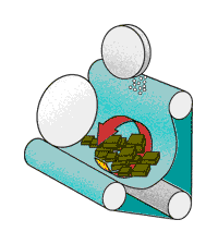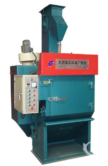 將工件放入橡膠履帶滾筒中,操作人員按下“運行”按鈕,拋丸室門氣動關閉,拋丸清理開始,履帶向前運行,工件不斷地進行翻滾,高效強力拋丸器將拋丸高速拋 射到正在翻滾的工件表面上,工件可完全均勻地得到清理。鋼丸通過履上的溜孔流入螺旋輸送機,再將鋼丸輸送到斗式提升機,經斗式提升機提升到分離器,被分離 后存儲待用。拋丸結束后拋丸室門自動開啟,履帶反轉,將工件缷出。