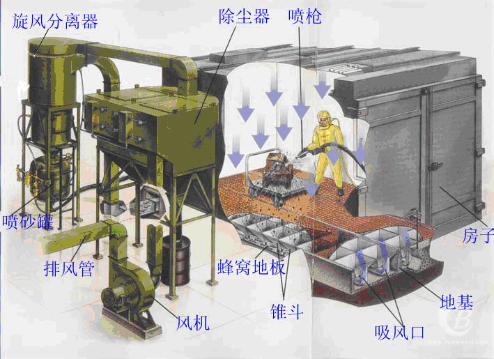 ![]() 氣力回收式噴砂房 ![]() 配套的噴砂系統(tǒng)除塵等裝置